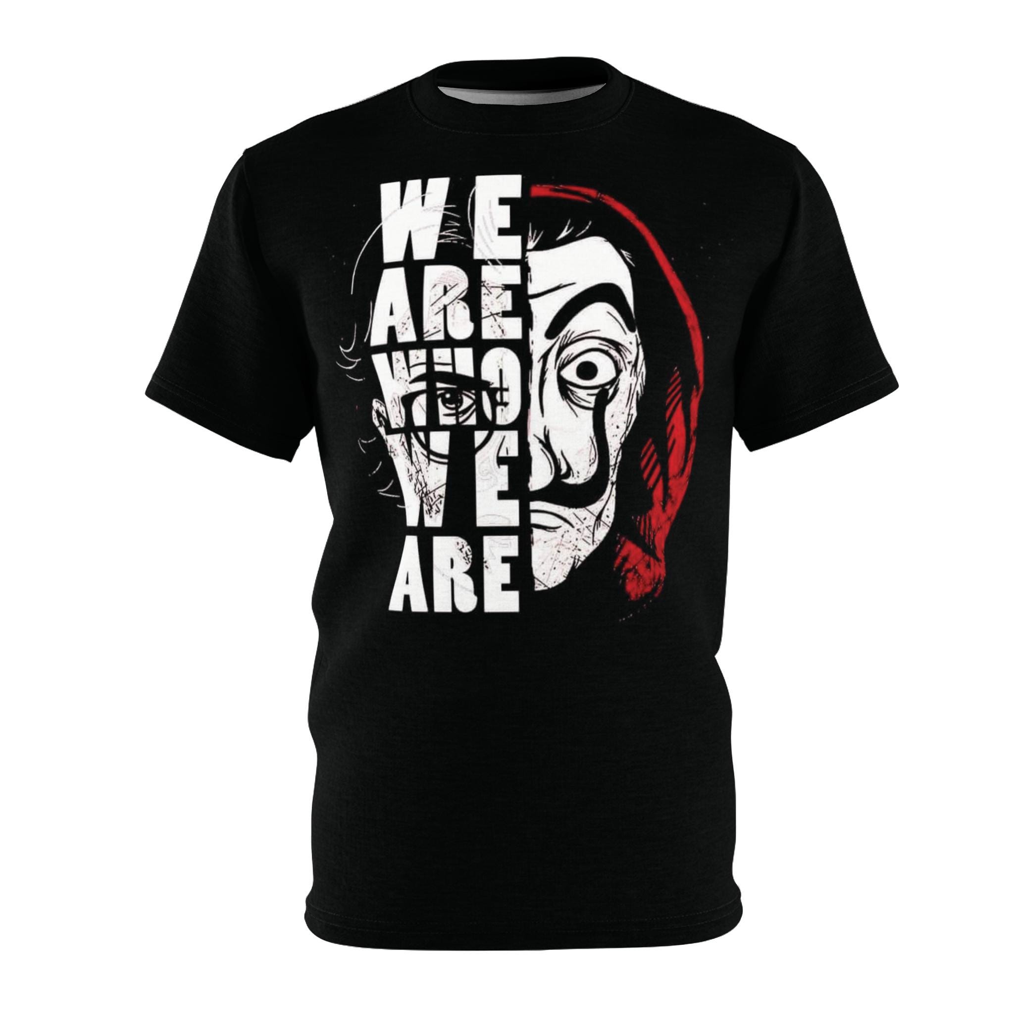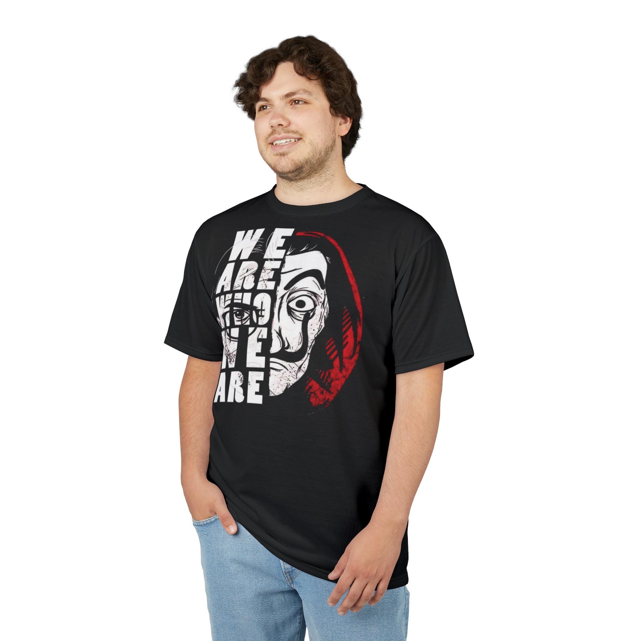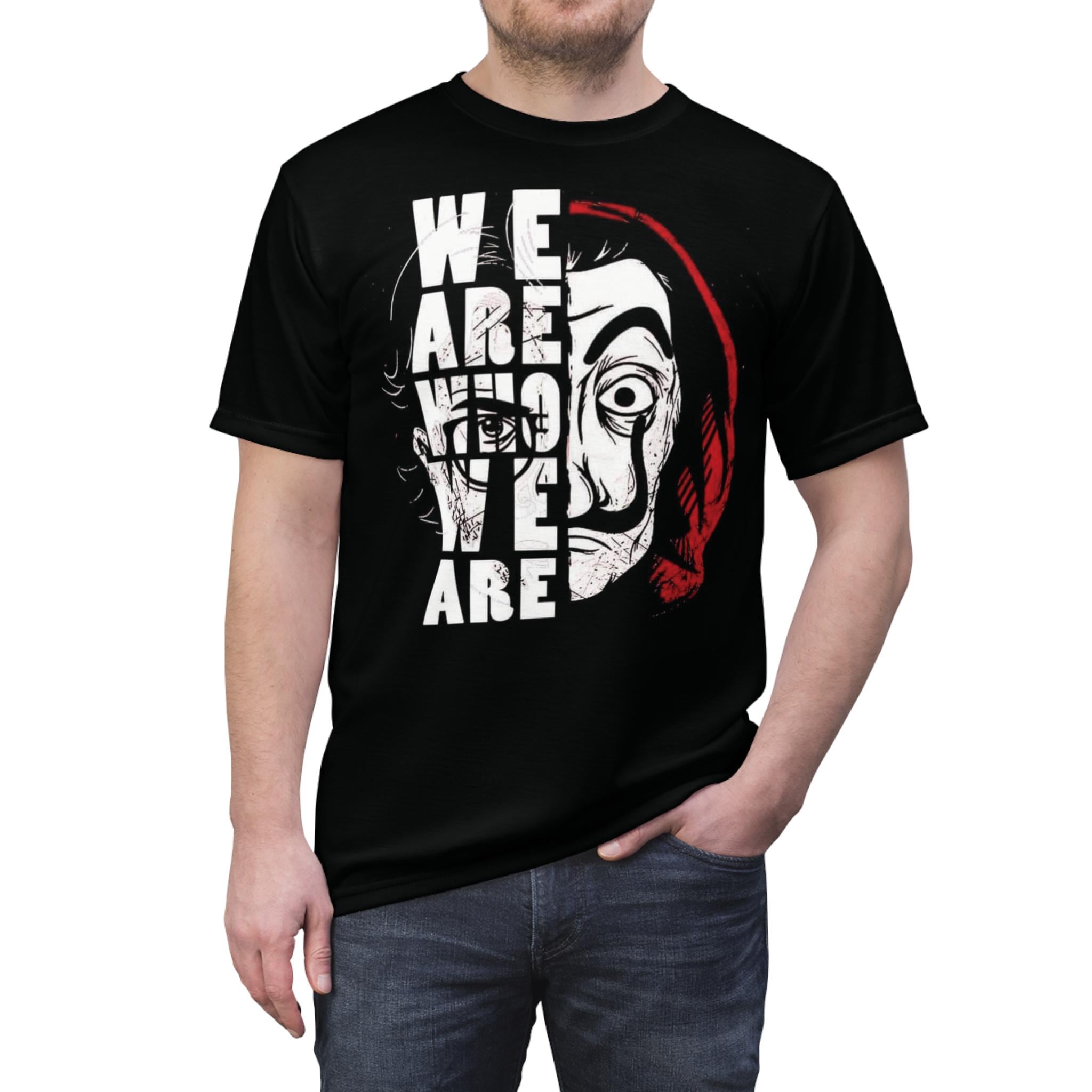 This all-over print tee channels bold, rebellious energy with a striking split-face graphic and block lettering. The artwork—half masked, half exposed—carries an intense, cinematic feel that sits comfortably on a black background, making the reds and whites pop. Lightweight and resilient, the shirt holds its shape through wear and wash, keeping the print vivid. Wear it to make a statement at protests, fan meetups, or late-night city hangs. It layers well under jackets or stands alone as a conversation starter for anyone drawn to counterculture visuals and dramatic streetwear aesthetics.